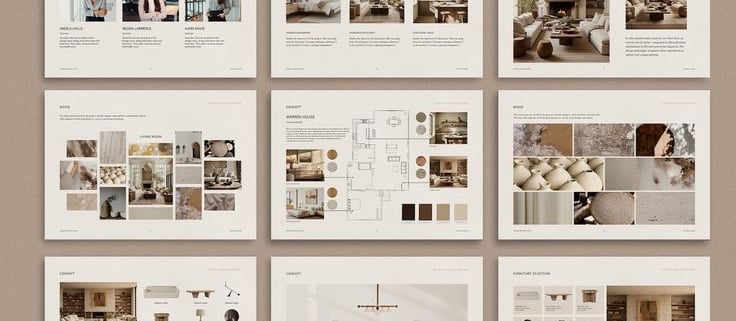 À cela s’ajoute une planche d’ambiance dédiée à chaque pièce, définissant une ligne stylistique claire à travers une palette de couleurs, des matériaux adaptés et des éléments d’inspiration visuelle, pour une présentation cohérente et séduisante.